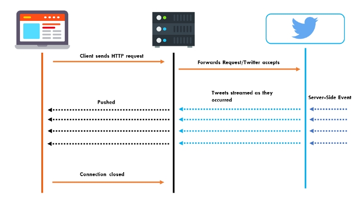 HTTP Streaming: Cái này sử dụng tốt cho những ứng dụng dạng news/social media feeds, stock/score board, tweet… Nhưng trong thực tiễn, người ta thường dùng WebSocket hơn là HTTP Streaming.