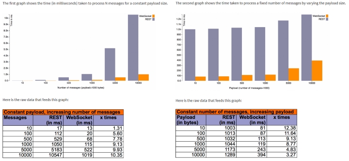 Nếu bạn thực hiện một performance test cho REST và WebSocket, bạn có thể thấy rằng WebSocket thực hiện tốt hơn khi ở mức tải cao (high load). Điều này không có nghĩa REST là không hiệu quả. Bởi mỗi đối tượng xử lý những bài toán khác nhau và không thể chỉ so sánh bằng những kết quả test này.