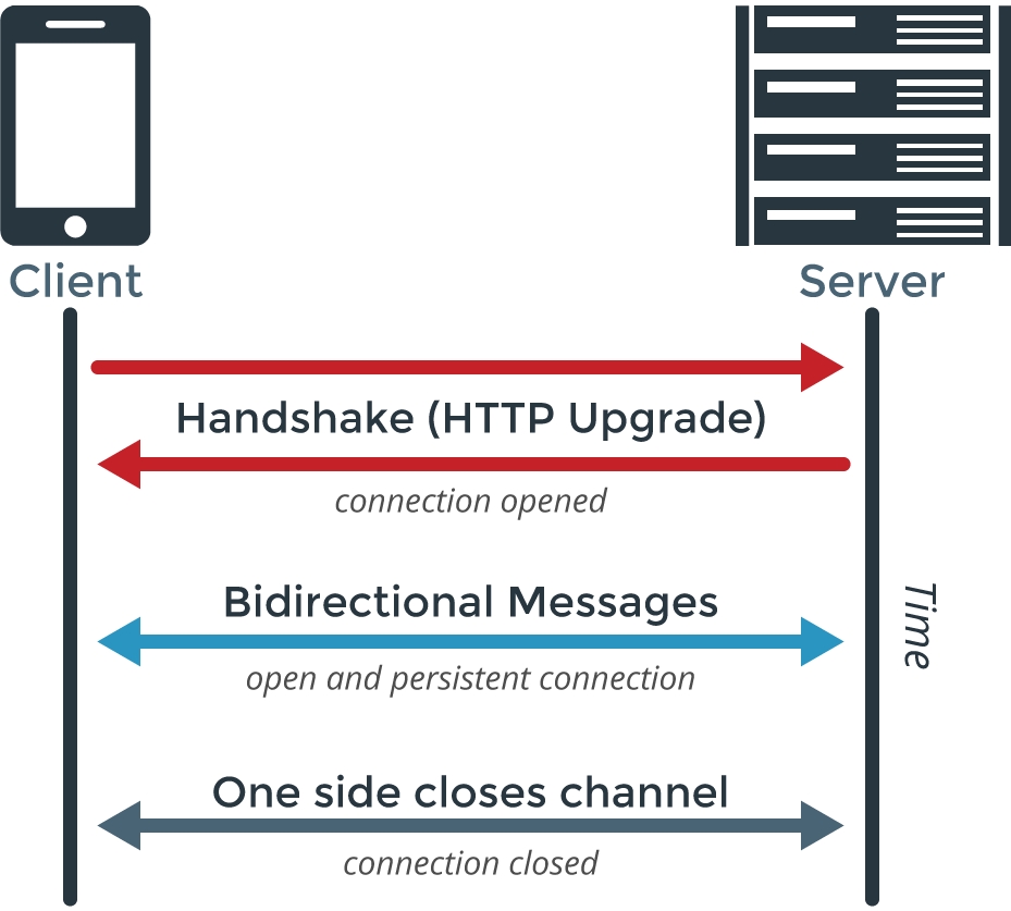 Bi-direction protocol: client/server đều có thể gửi message cho đối phương. Trong HTTP, request luôn luôn được khởi tạo bởi client và server trả về response — điều này có nghĩa HTTP là một uni-directional protocol.