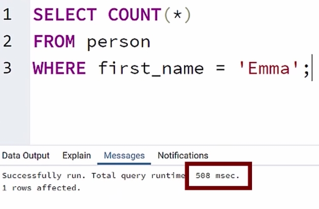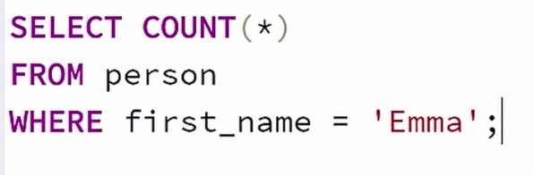 Và đây là thời gian để đếm tất cả person có first_name là Emma