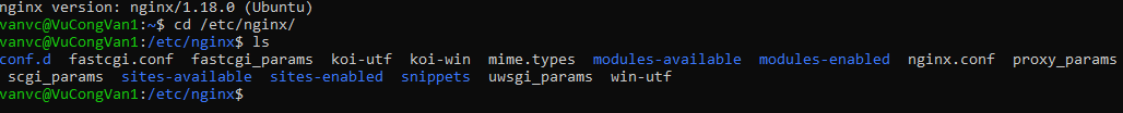 Trước khi đến bước tiếp theo mình thử vào thư mục /etc/nginx xem có những gì và điểm qua ý nghĩa của mấy thư mục quan trọng nhé.